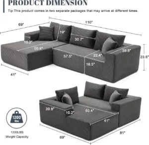 La mayoría de los sofás modulares requieren montaje y utilizan estructuras rígidas. Este, en cambio, no tiene estructura interna, no requiere herramientas y se adapta instantáneamente a tu espacio. Esa diferencia es la razón por la que tantos clientes lo eligen.