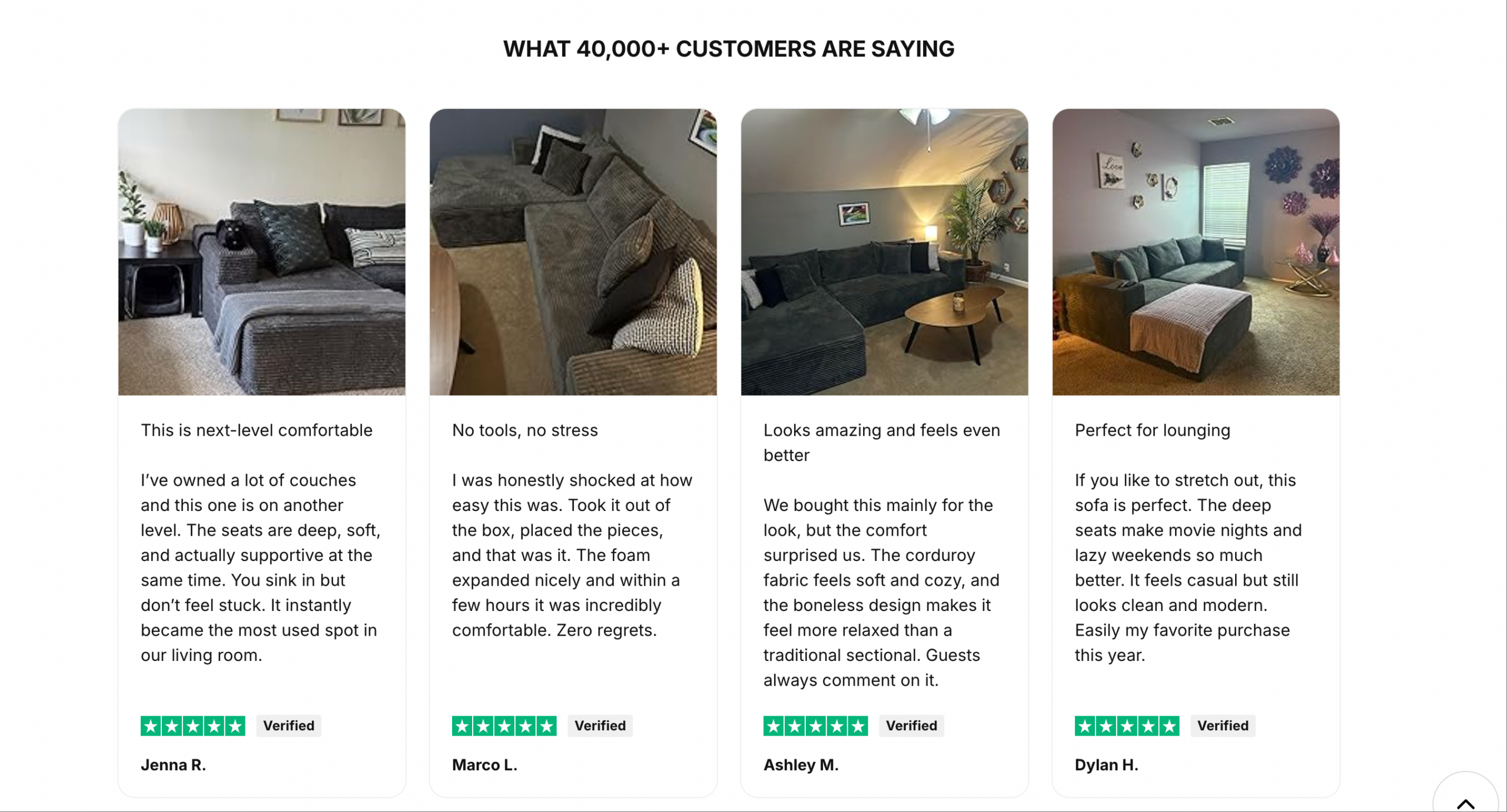 Estaba nervioso por comprar un sofá en línea sin probarlo primero, ¡pero vaya! Me senté y me derretí. De alguna manera, te sostiene a la perfección. El mejor sofá que he tenido, sin duda.